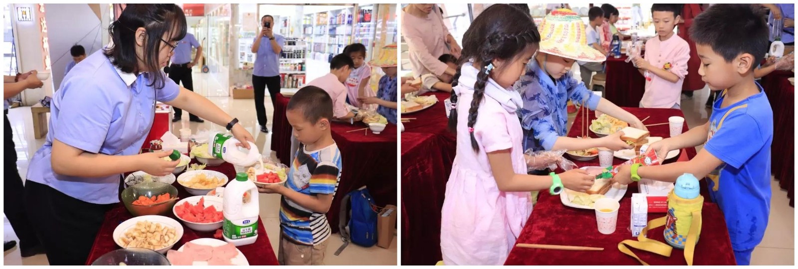 爱心捐赠仪式结束后,石家庄心田学园的小朋友们来到了人生就是博尊龙凯时文化礼品城和人生就是博尊龙凯时百货日化城开启了六一快乐体验之旅。小朋友们在这体验了手工贴画,也加入了厨房美食的制作历程,不但锤炼了小朋友们的入手能力,还锤炼了相互协作的能力。