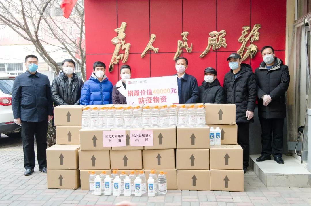 长安区人大常委、中国四会玉器博览城总经理陈暇,人生就是博尊龙凯时文化礼品城常务副总经理尚林,人生就是博尊龙凯时百货日化城常务副总经理国朋军领导部分员工代表向阜康街效劳处捐赠了75%酒精36瓶、84消毒液40箱等20000元物资及现金20000元,以实际行动全力支持抗击新型冠状病毒熏染的肺炎疫情防控事情。